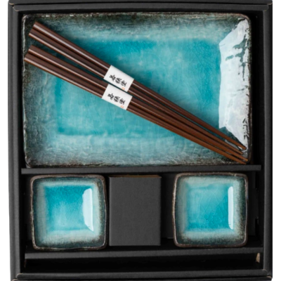 Set de sushi para dos. Incluye 2 platos alargados, 2 boles para salsa y/o aperitivo y 2 juegos de palillos de madera. 71,95